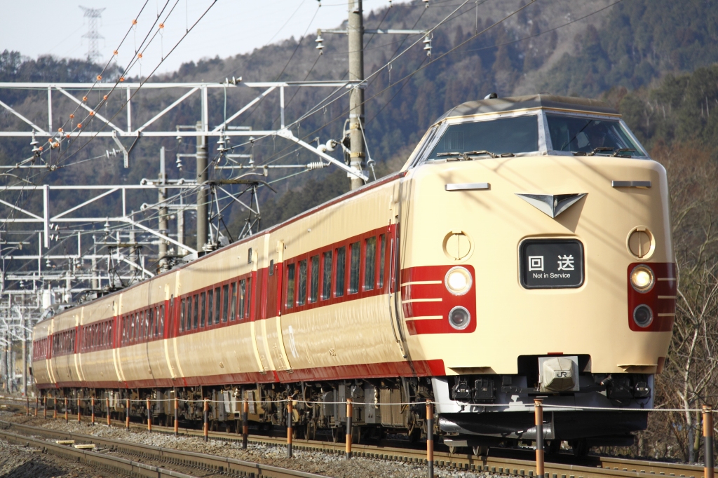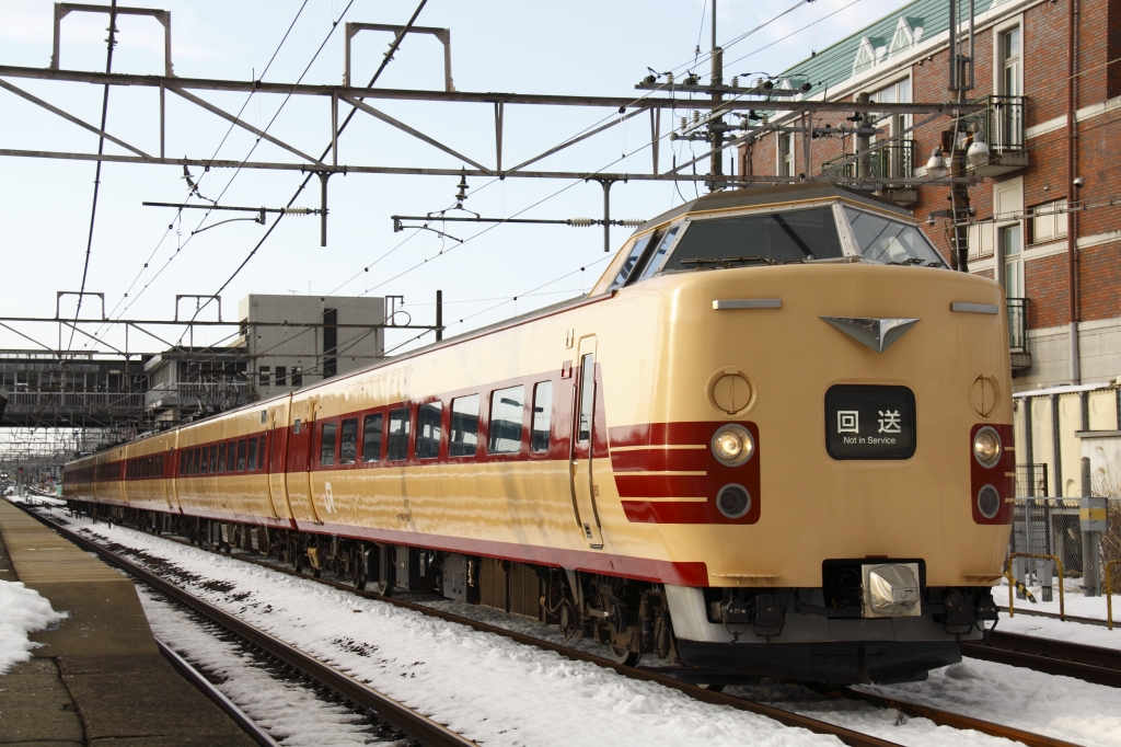この日は、381系日根野車6B使用のスキー臨回送が朝にあるというので、出撃。
